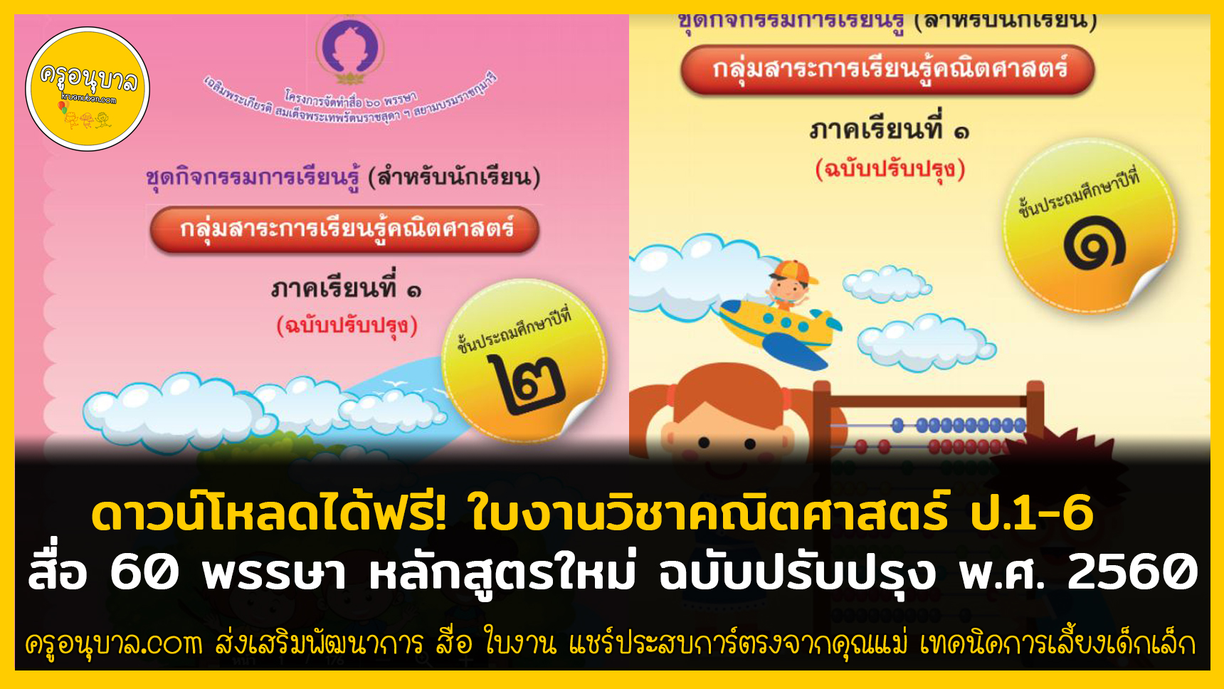 ดาวน์โหลดได้ฟรี! ใบงานวิชาคณิตศาสตร์ ป.1-6 สื่อ 60 พรรษา หลักสูตรใหม่ ฉบับปรับปรุง พ.ศ. 2560