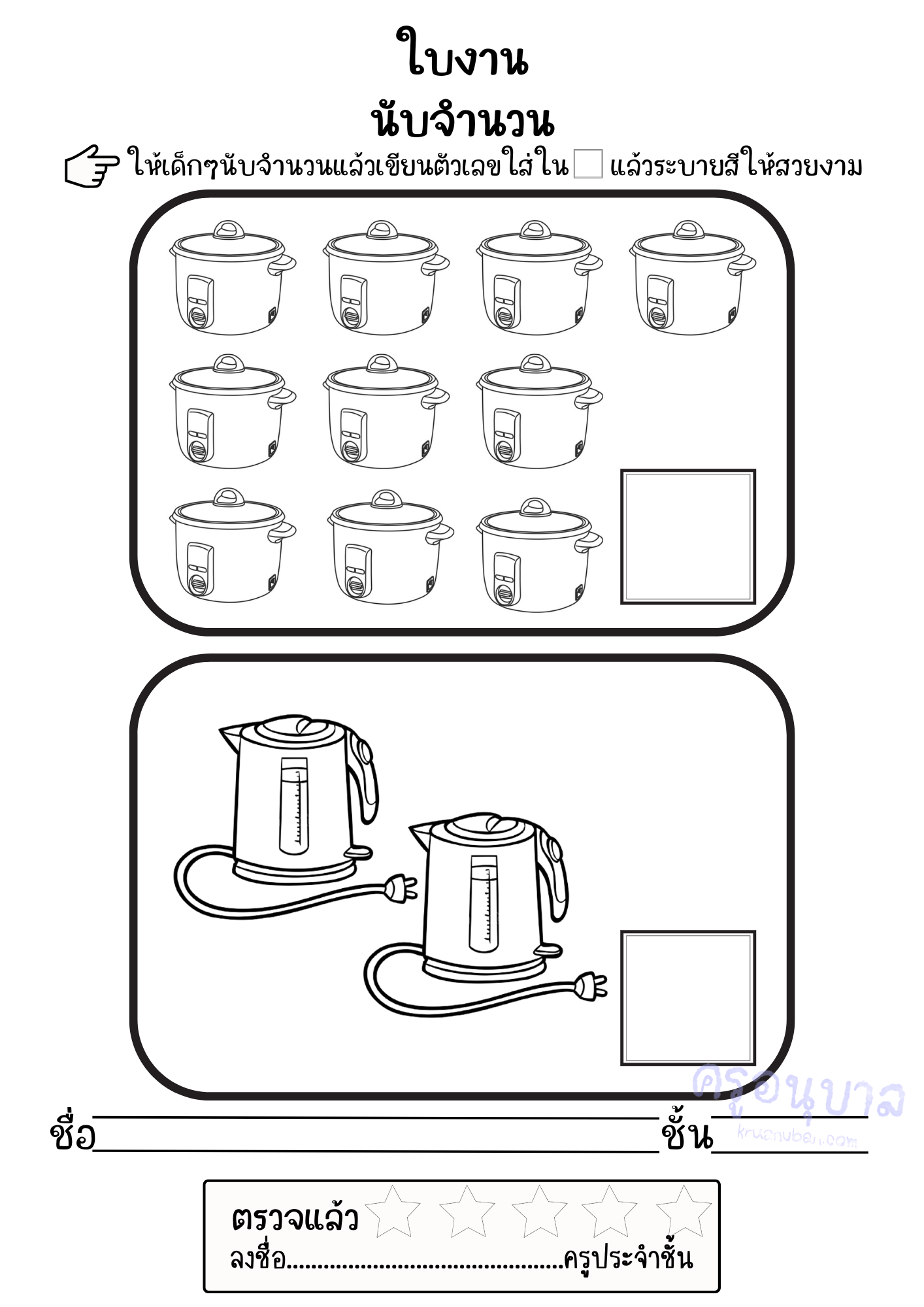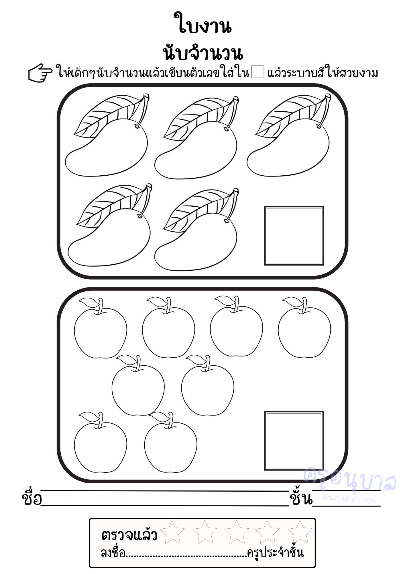 ใบงานสำหรับอนุบาล ใบงานนับจำนวน