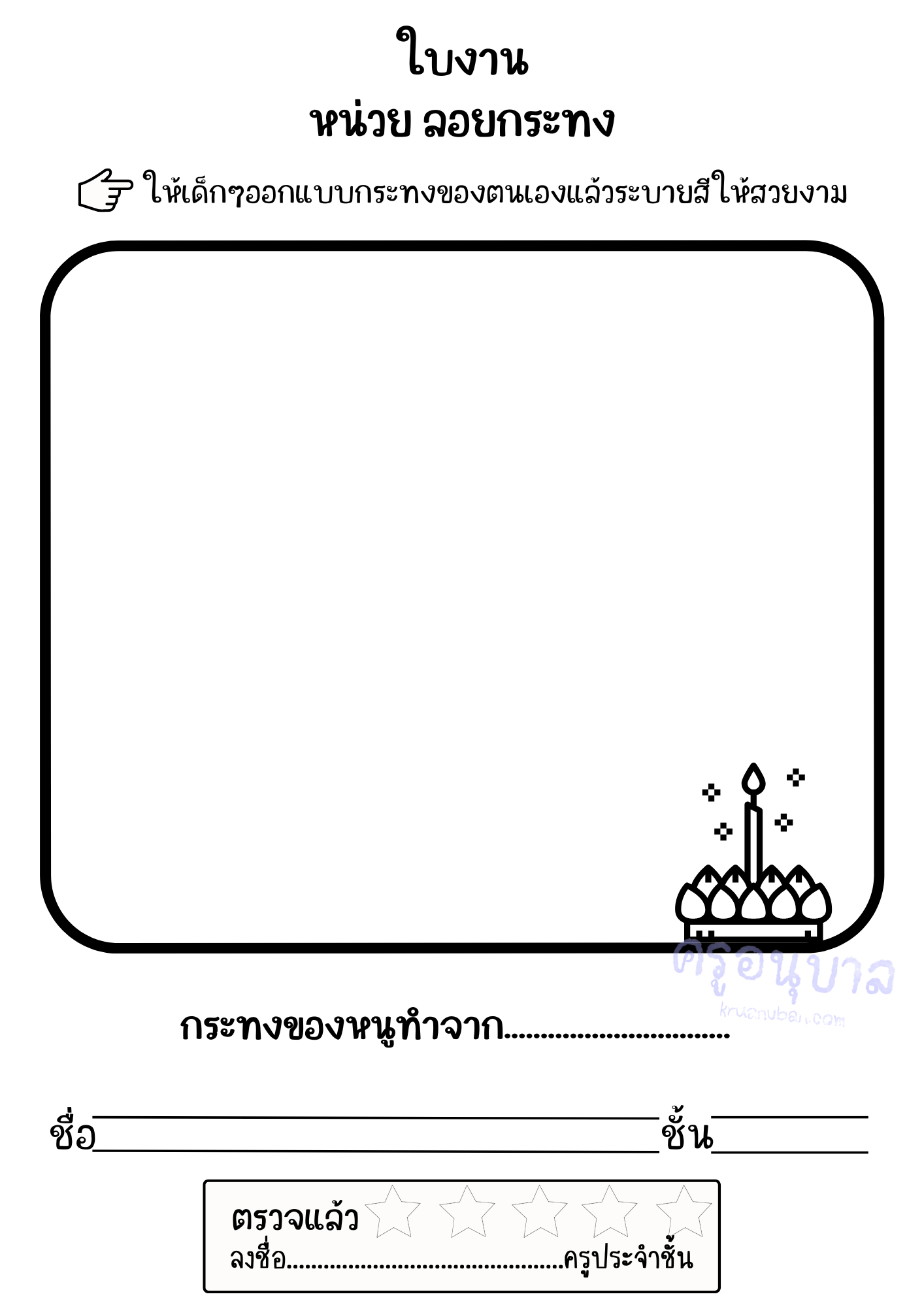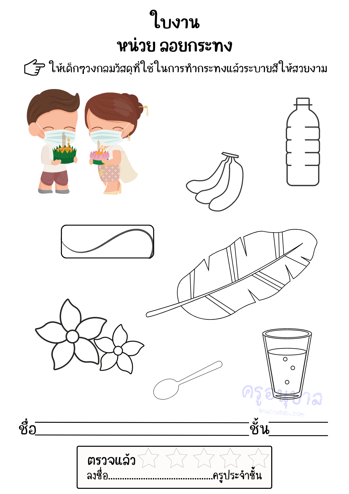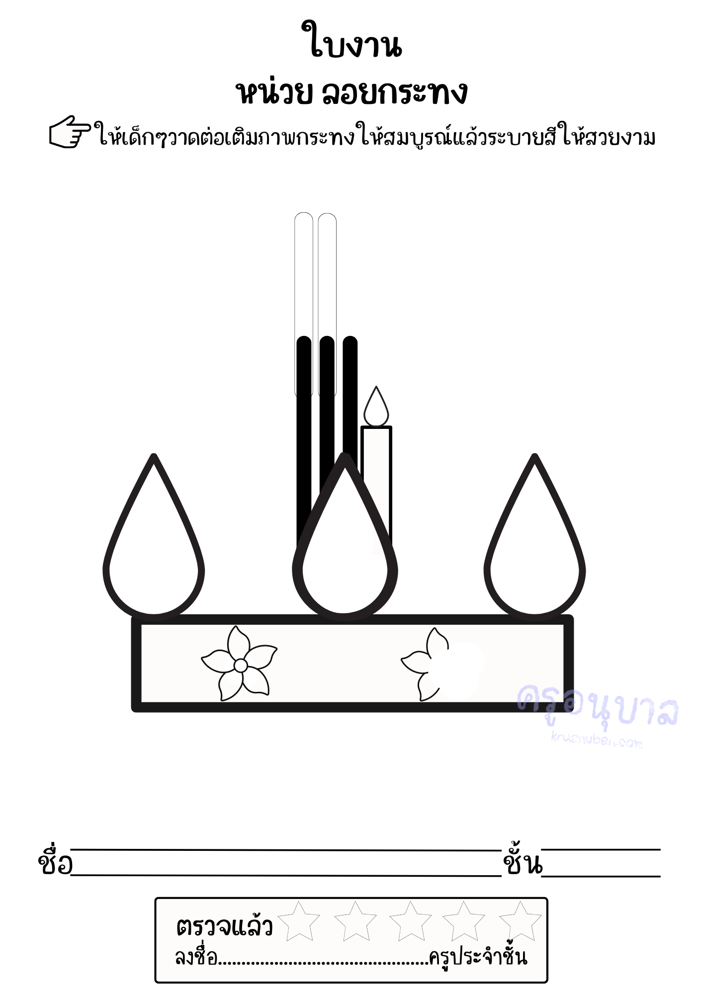 ใบงานสำหรับอนุบาล ใบงานวันลอยกระทง