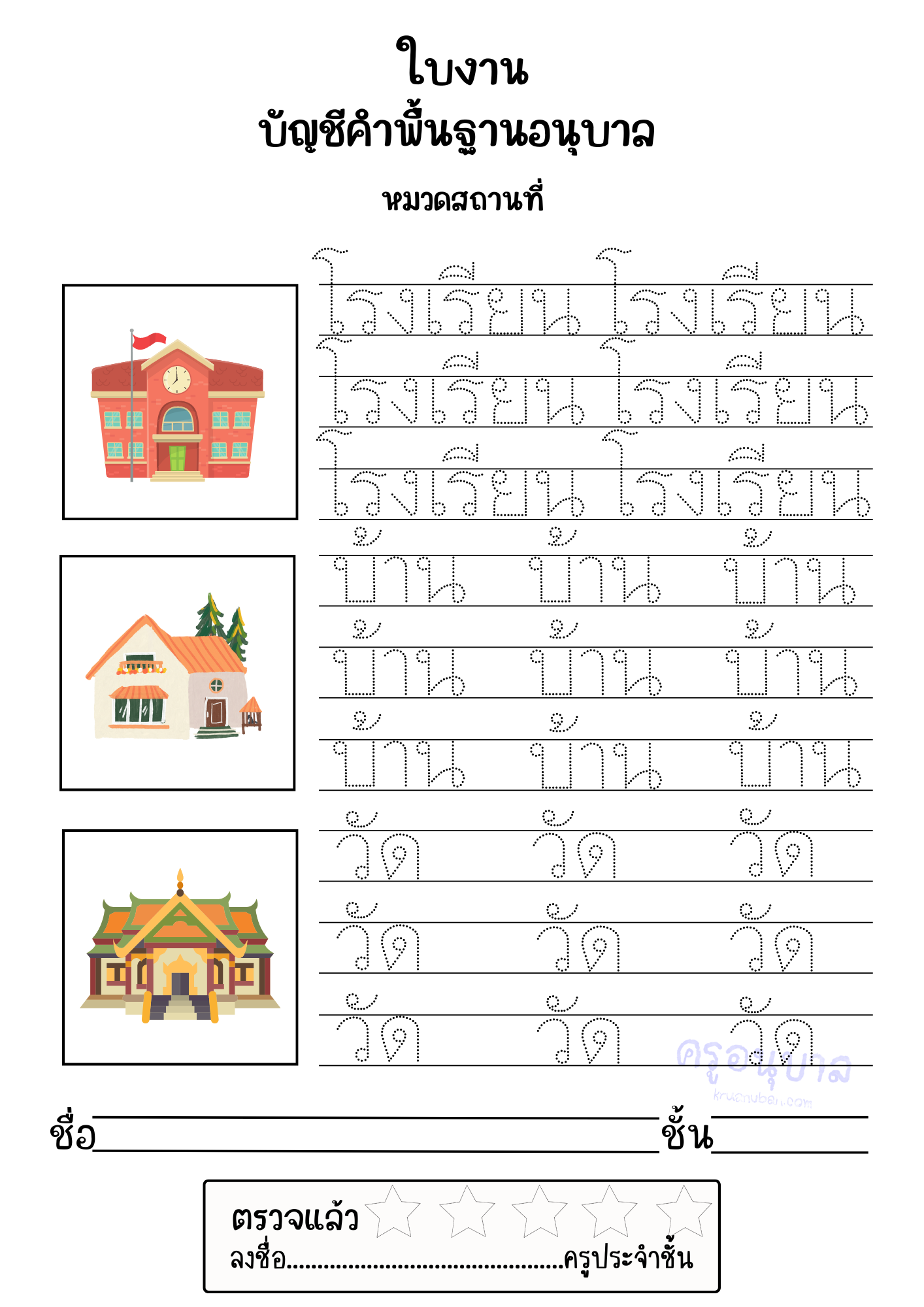 #แจกฟรี ใบงานอนุนาล เรื่อง ใบงานบัญชีพื้นฐานสถานที่ เด็กอนุบาล ปฐมวัย