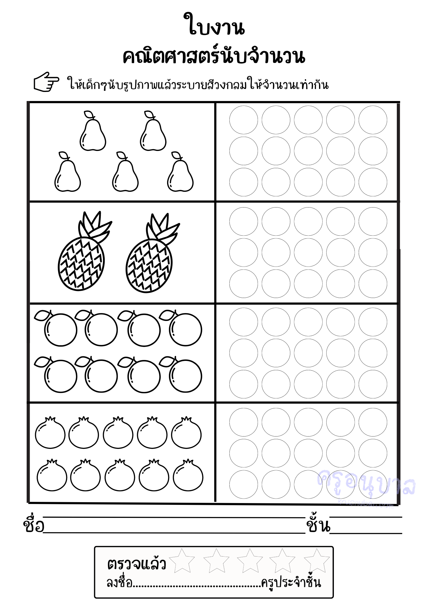#แจกฟรี ใบงานอนุนาล เรื่อง ใบงานคณิตศาสตร์นับจำนวน เด็กอนุบาล ปฐมวัย