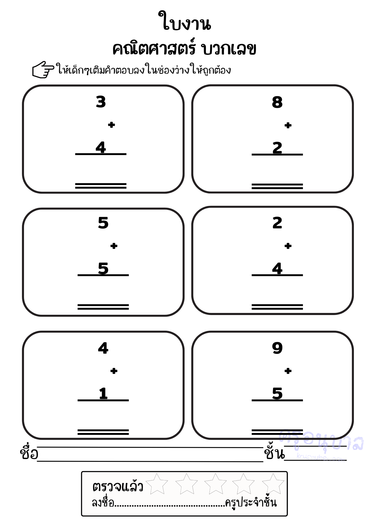 #แจกฟรี ใบงานอนุนาล เรื่อง ใบงานคณิตศาสตร์ บวกเลข เด็กอนุบาล ปฐมวัย